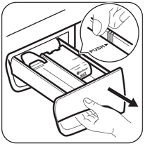 1. Eemaldage sahtel. Lükake sahtli serv noolega (PUSH) kohale, et sahtlit hõlpsalt eemaldada.