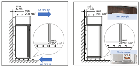 Kõik külmutusseadmed vajavad õige töö tagamiseks ventilatsiooni. See on ülioluline integreeritud seadmete puhul, kus selleks on vajalikud ventilatsiooniavad. Mõnikord võib esineda müra, kuna ebapiisav ventilatsioon mõjutab seadme jõudlust