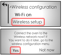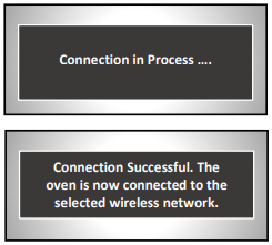 Ahjus | pärast laadimist ... lülitage ahi sisse Vajutage ahju ekraanil WiFi-ikooni | Kui traadita ühenduse konfiguratsiooni ekraan avaneb, vajutage WiFi välja ja valige ON | Oodake ja valige suvand Traadita ühenduse seadistamine, kui see ilmub. Teie ahi alustab WiFi kasutamist ja selleks võib kuluda 30–40 sekundit. valige järgmisel ekraanil Jah, kui teil palutakse ahi traadita võrku ühendada | Kui näete seda ekraani liikumas mobiilseadme rakendusele |