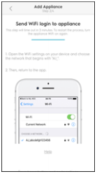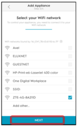 Mobiilseadmes | vajutage nuppu NEXT | Kui näete seda ekraani, minge seadetes WiFi loendisse | valige AJ_OV1_xx.xx.xxx ahju WiFi-võrk ja naaske Electroluxi rakendusse | järgmise ekraanini jõudmiseks kulub paar sekundit | Valige oma kodus ruuteri WiFi-võrk ja valige JÄRGMINE | Sisestage oma mandaat ja valige JÄRGMINE See küsib "Kas soovite seda võrku meelde jätta? Valige JÄRGMINE | Ahjuga ühendamiseks kulub paar sekundit. |